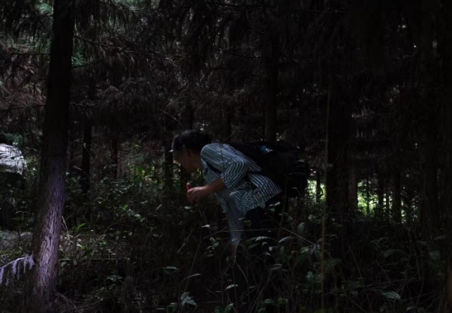 而突如其來的陣雨給下山路增添了不少麻煩,山路濕滑無比,一不小心便會摔跤。漸漸地,夜色開始籠罩大山,黑夜中的大山里時不時傳來各種鳥類怪異的叫聲,微弱的手電燈光是組員們在山間唯一的希望。中餐草草打發(fā)的組員們饑餓不堪,趕快分食了剩下的幾塊餅干充饑,靠著相互扶持和個人意志艱難走到了山下。時間的指針慢慢挪到了9點30分,組員們終于平安抵達山下,山腳邊等待著的車輛大燈,微黃的燈光在夜色中顯得如此溫暖、安定,心中的石頭這才算是落了地……